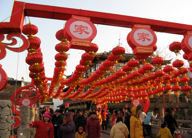 这是颐和园后山的苏州街,是当年仿照江南苏州建造的。每年都在这里举行庙会,有很长的水岸,小桥流水,两岸店铺,用铜钱来买年货,工艺品,人人声鼎沸,这是我初六来的,庙会已结束了。