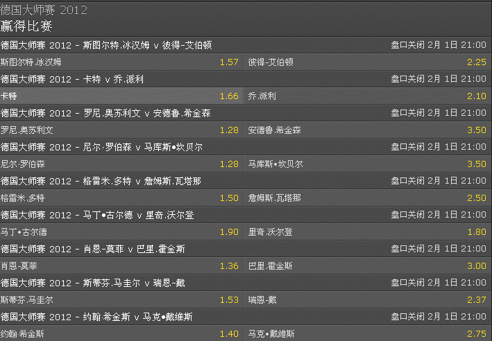 于是这贴就当德国大师赛的秩序册了,我的消息也往这儿更新,不知LZ介意否?嗯哼~~