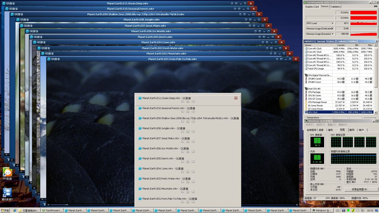 用同一款播放器同时播放11部电影:
