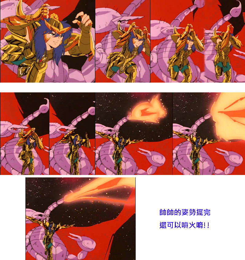 因为车田导演尚未决定的关系,米罗也不能擅自使用帅帅的姿势以外其他技能...话说,蝎子的尾巴到底为何能喷火?