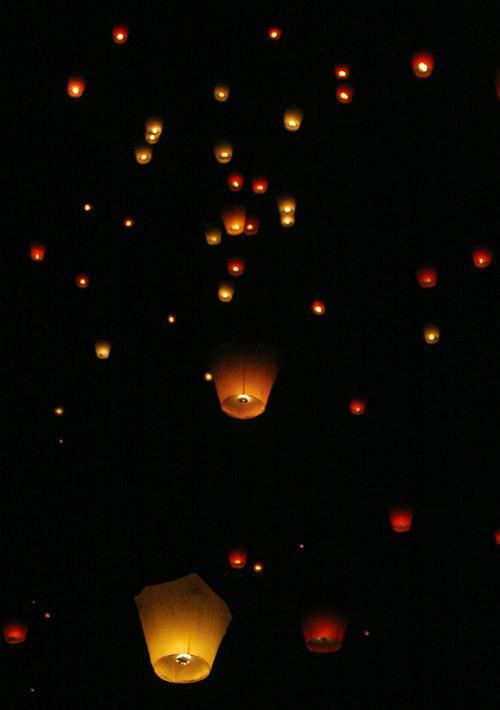 抬头看却是孔明灯。