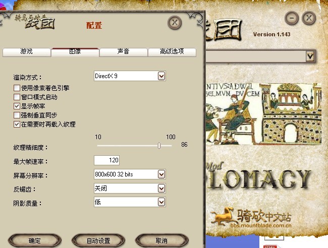 我了骑马与砍杀1代了,下了一小时,外加汉化补丁差不多一小时15分钟,安装好后打开出现主界面还是英文的,看不到E文,但那个首选PIAY什么的还是点了,开始游戏..