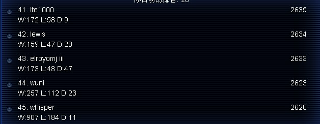 我给你发上全宇宙前100的排名吧。。你看看在不在里面。。