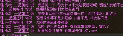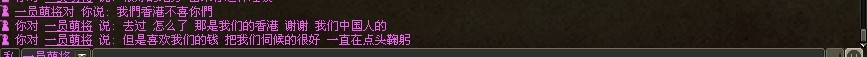 我承认香港人很多是好的,我也接触过不少香港人,包括我现在的同事也有香港人,这就像我们大陆有品性低劣的,但也是少数一样。但我没有以偏概全。而这个所谓的香港人呢,而且从他后面的话里你可以知道我没有曲解他的意思,他意识里就是没有把大陆和香港算为一个整体。我也经常说咱大陆怎样怎样,但从这种人嘴里说出那种话听着就是让人不舒服!以前网上不是流传一句话吗:什么是母校,就是你一天骂了八遍,却不允许别人骂的地方!同理。