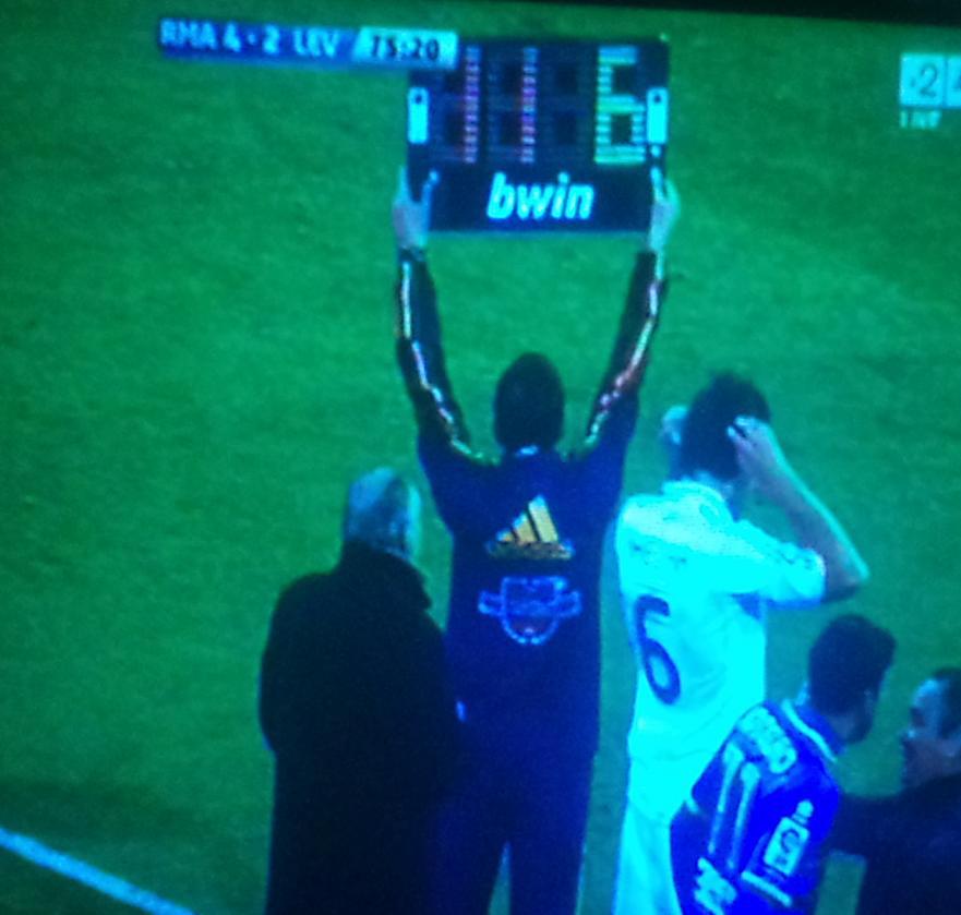 皇家马德里出场阵容:卡西利亚斯:阿韦罗亚,佩佩,拉莫斯,科恩特朗;格拉内罗,阿隆索;本泽马,厄齐尔(81',卡卡),C-罗纳尔多;伊瓜因(67',卡列洪)