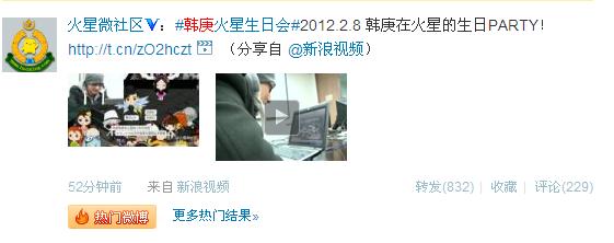 2012.2.8 韩庚在火星的生日PARTY! http两点//t点cn/zO2hczt (分享自 @新浪视频)