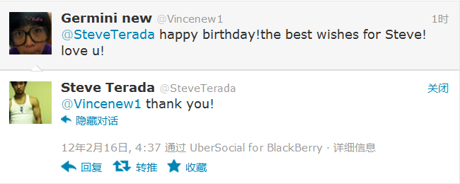 呵呵,没事,我看你过于激动了,steve又回复你了,我真羡慕你,我都没看过他推特啊