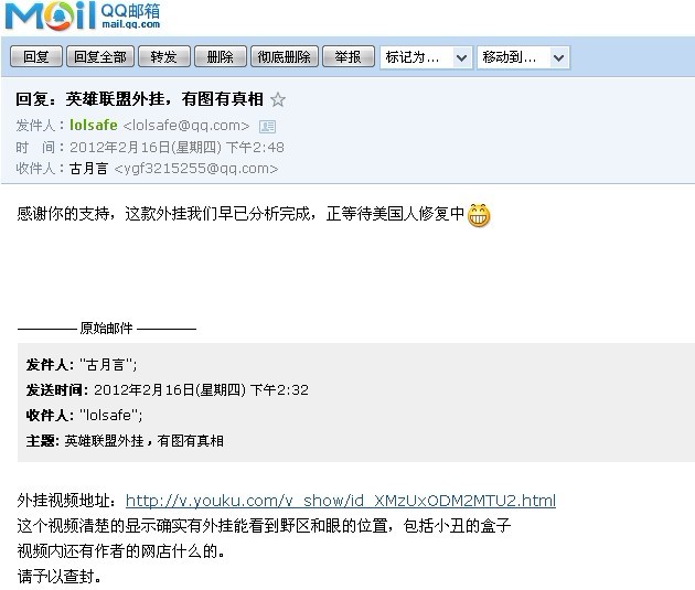 看到好多贴外挂的,我给腾讯发邮件了,人家回复了。。。。
