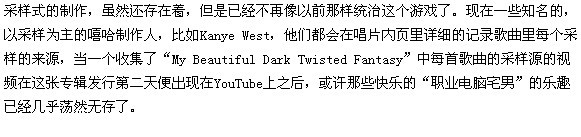 上世纪80年代末,当诸如E-mu出品的SP-1200和Akai的MPC-60等一批实用的采样机面市之后,伴奏制作者们发现了一种新的创意,他们从其他音乐家们的作品里选出合适的段落做成循环(loop),加上鼓点和贝司做成新的曲子,他们把这一技术叫做采样“Sampling”。他们喜欢在一些不太知名的歌曲里选一些不太被用到的段落进行采样,而这,也让寻找采样源成为了某些嘻哈音乐迷们的特殊爱好,这些人被冠以了“职业电脑宅男”的称号。