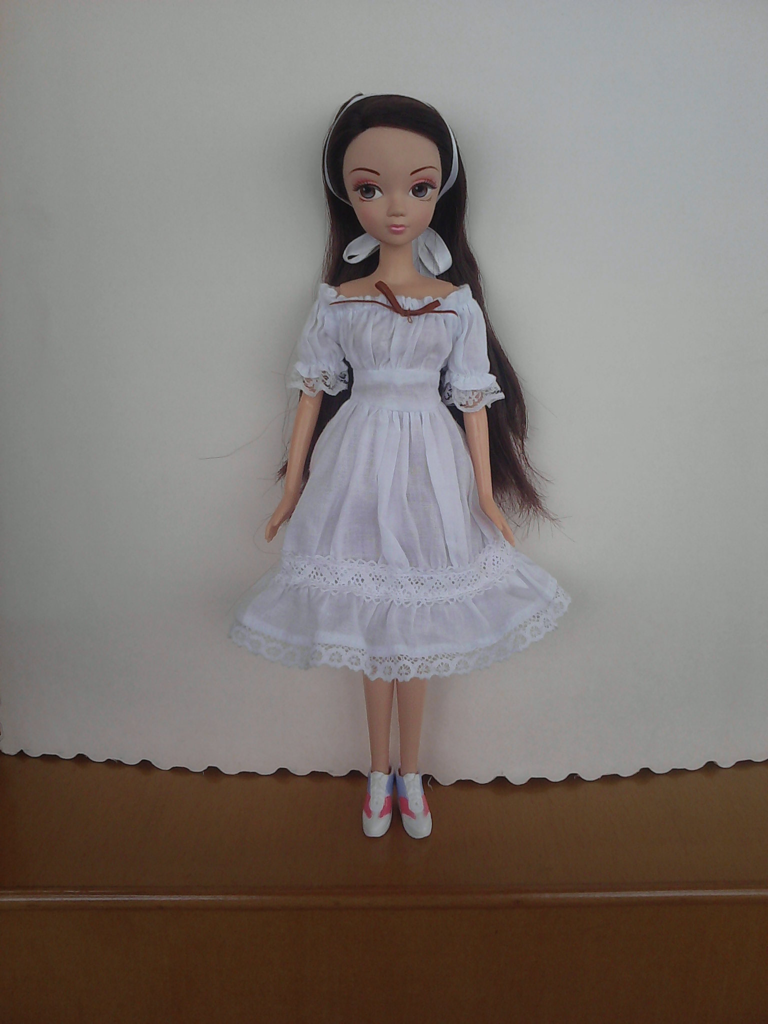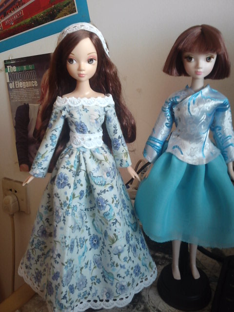 旗装全套50,包括娃娃。七周年裸娃20,可送第一张图片的自制,有点残。白色婚纱2米,戴帽子可儿全套15,蓝色那套。全部打包100包邮。