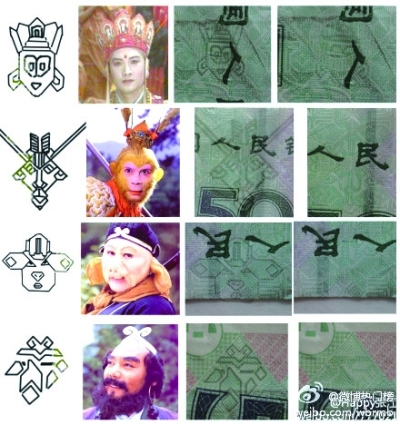 搬砖:继人民币100元“跪拜猫”后,50元又出现“唐僧师徒”。