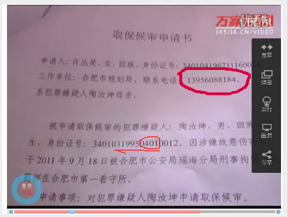 受害人尚在重症监护室时,陶汝坤的父母拿出一份关于认可陶某当天积极救治和自首、并且与客观事实完全不符的材料让周某家人签字,以便让陶汝坤取保候审。周某家人拒绝签字后,陶某方面就不再支付治疗费用。在无力支付医药费,拖欠医院近十多万元治疗费用后,受害人不得不被迫出院。此为恶妇许丛笑的为其毒子递交的《取保候审申请书》