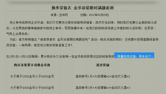前一段来个手机会员,一个月15块就发短信一次性送个几万银币,都赶上我一个月的手机流量了。这次来个3000软妹币买涂装送限量坦克。——你这是侮辱我的智商呢?还是侮辱我的智商呢?还是侮辱我的智商呢?