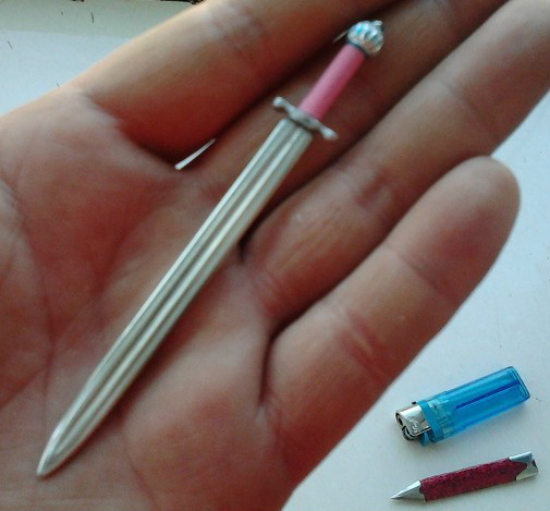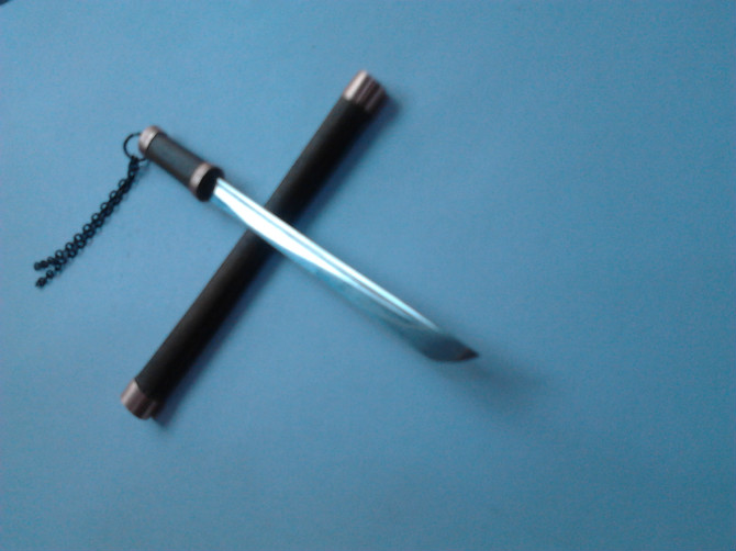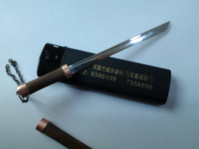 这是俺按铁匠教程做出来的第一把刀,因为不会在砸条时控制砸出弧度,所以就试做了把唐刀,虽然不是切刃的(刚开始做的时候,还不知道啥叫切刃......),但好歹还能看出来是把刀