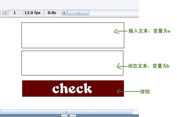 则下面的方框显示”no“ 下面是我加在”check“按钮上的动作代码: