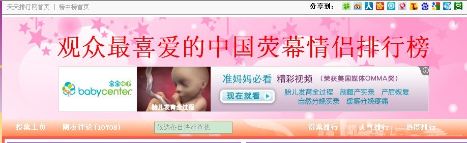 【投票】去投票啊《观众最喜爱的中国荧幕情侣排行榜》