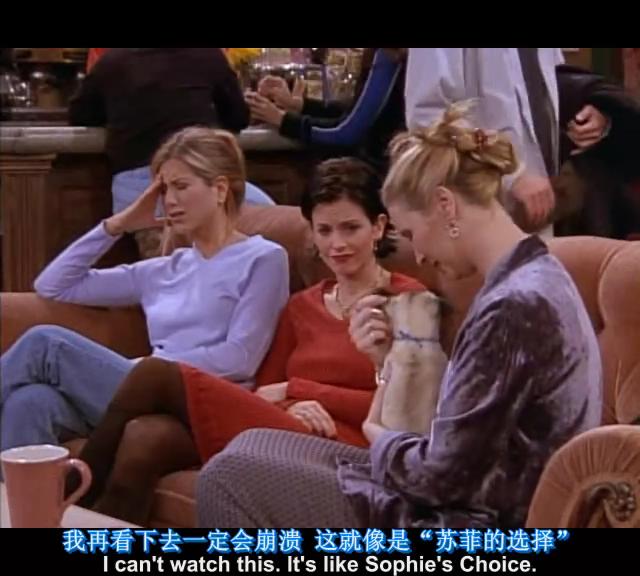 最近太多访谈,记不太清是哪一个show了,jen提到她领养Sophie的时候,就是因为自己很难过,哭得一塌糊涂,在选择的时候很困难,然后提到“苏菲的选择”,才给取名sophie的,结果,S4e11,jen 居然已经提到过Sophie’s choice~~真是人生如戏啊!