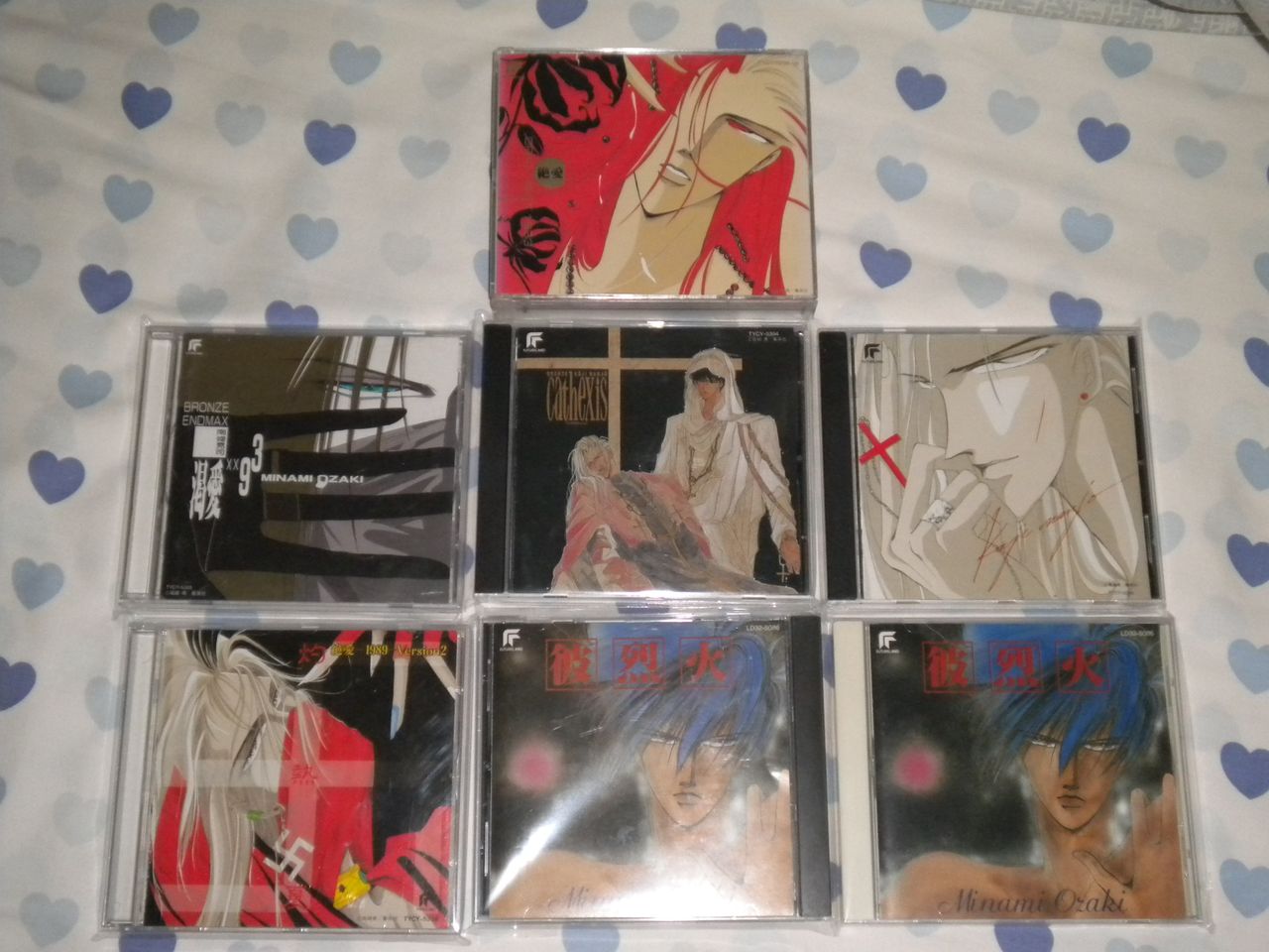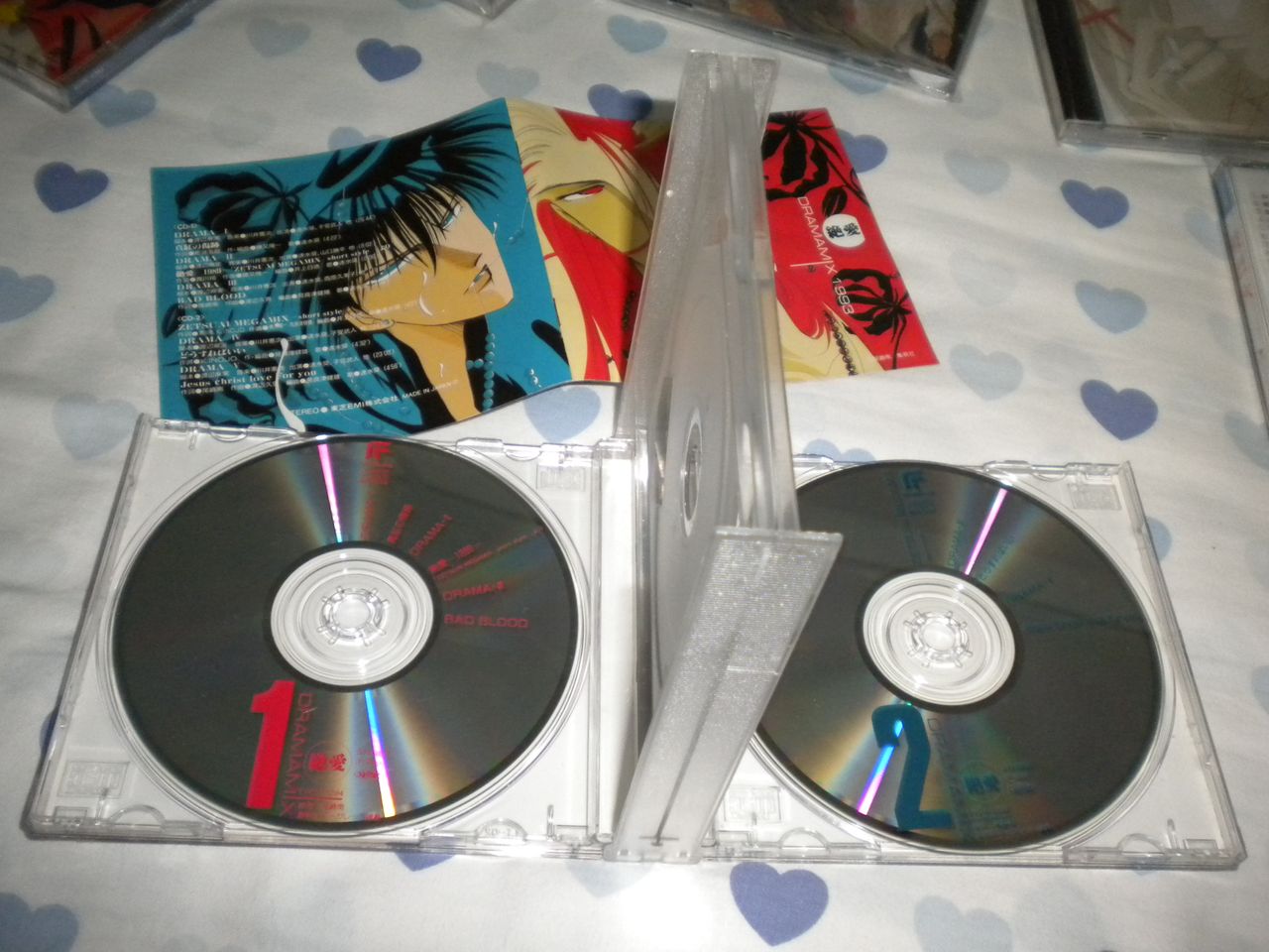 这次收到的碟最大的遗憾就是通通没有侧封,因为年代实在太过久远,侧封又是和CD本体分离的,很容易丢失。不过就这次收到的所有碟的品相来看可以说是十分满意,虽然一共花了我近6000日元,还是觉得非常值得的,尤其是收到了初版的《彼烈火》和2CD装的《DRAMA MIX 1993》。