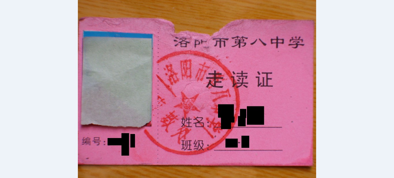以前八中的走读证,不知道现在换了没,高三时候加了政教处主任的章,过了塑