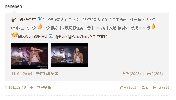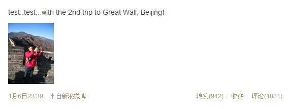 2012年1月3日下午14:07,P娃纸在新浪发了第一条微博~~~