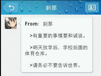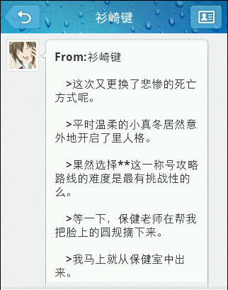 呵呵,觉得有点意思就做出来了。话说世界的那封宣告死亡的短信用手机看略微惊悚啊。。。好船的厄兆啊。。俺贴完图后果断删了