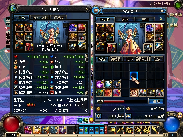 这是最近的 装备照。。。你可以参考。。。武器是加10墓碑矛。辅助是加10罗恩。别的统统都没加过8。衣服之类的 一级都没强。魔法石是加8的 手镯加8。别的都是加7