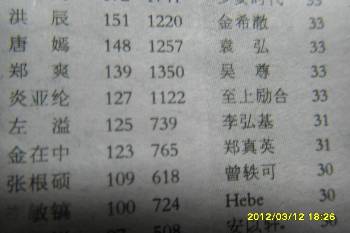 我买星周刊,左溢总在前十与前二十之间徘徊