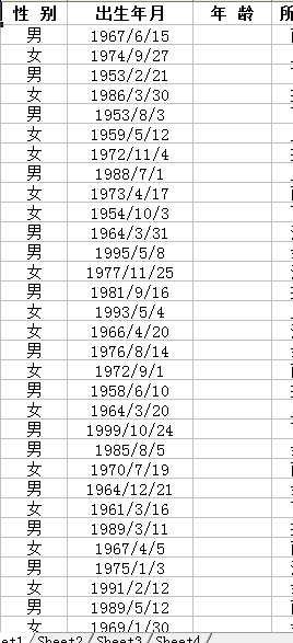 如图 怎么计算用户的年龄,并将其计算结果填充到“年龄”列当中