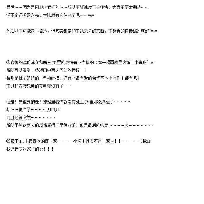 好怀念呢,看着楼主的手打想起去年看的台本~加油吧~