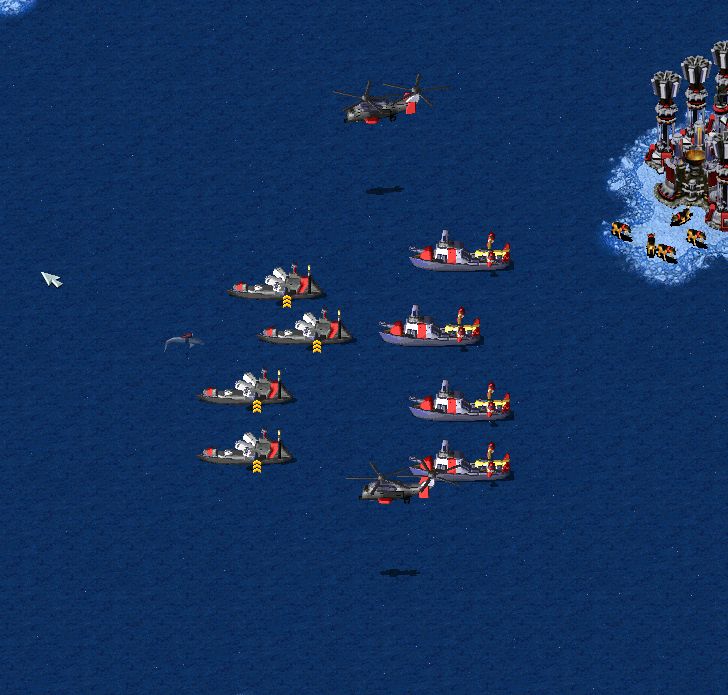 北方造船厂。水师所有大型舰船全出产自这里,图为船坞正在为一艘航母进行维修。图中的左下角,敌军的一队大兵正在注视着我方, 其中有一个一星大兵,他似乎对刚刚结束的冲突略知一二。