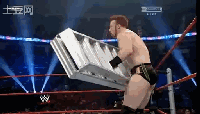 这招够狠!JM把Sheamus摔在立着的梯子上,大白的老二被硌了一下,疼了好长时间。