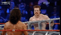 接着两人继续打斗,JM试图攻击Sheamus,但被对手抓住了一条腿,扛在肩上摔了出去,面部着地。