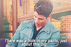 关于周四的Broadway bowling night活动情况如何?Nick本来是想像往常一样严肃对待自己的工作来着,可是当时球正要脱手裤子却被撕破了,而且整个晚上那个洞变得越变越大,Nick只好找件衣服把它盖住了
