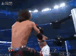 接着又使出了得意技,流星坠落(Standing Shooting Star Press),不过压制没有成功。