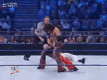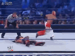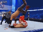 接着JM站了起来,619跪到JM肩上,用了一个Flip Powerbomb Pin,压制失败。