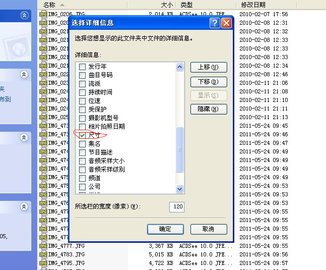 求助:每次“查看详细信息”每次都要勾选”尺寸“才显示像素
