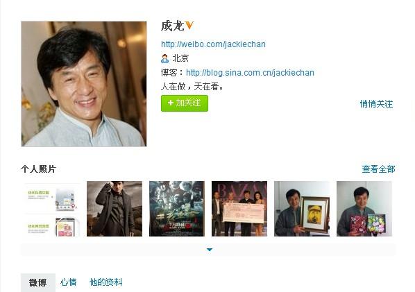 最新进展 成龙微博签名改成“人在做 天在看”表明态度