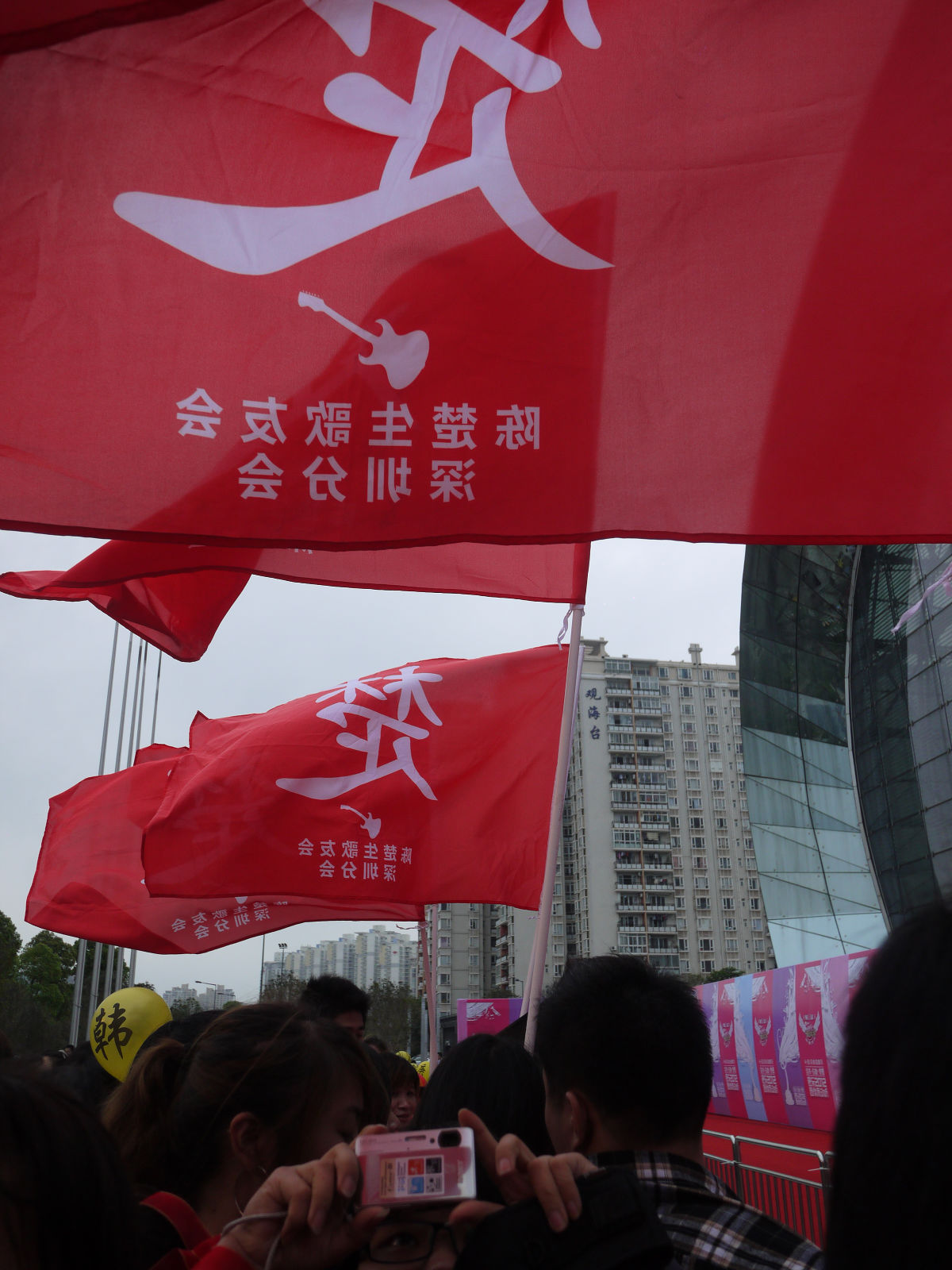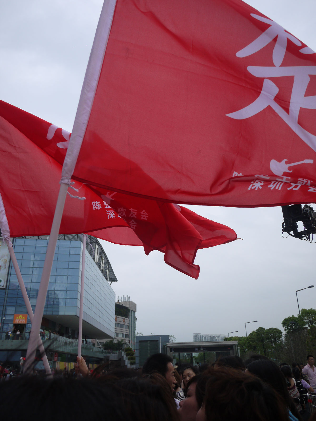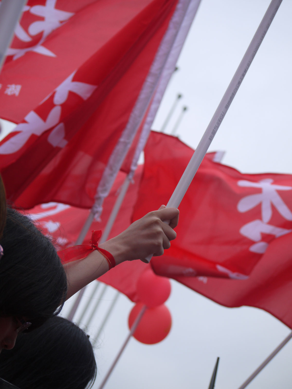 幸好只有一些雨粉在飘,大家依旧拿着灯牌,挥动旗杆,井然有序地站着,甚至还开始跟我们前面的保安员聊起来。而我,则开始有点困了。