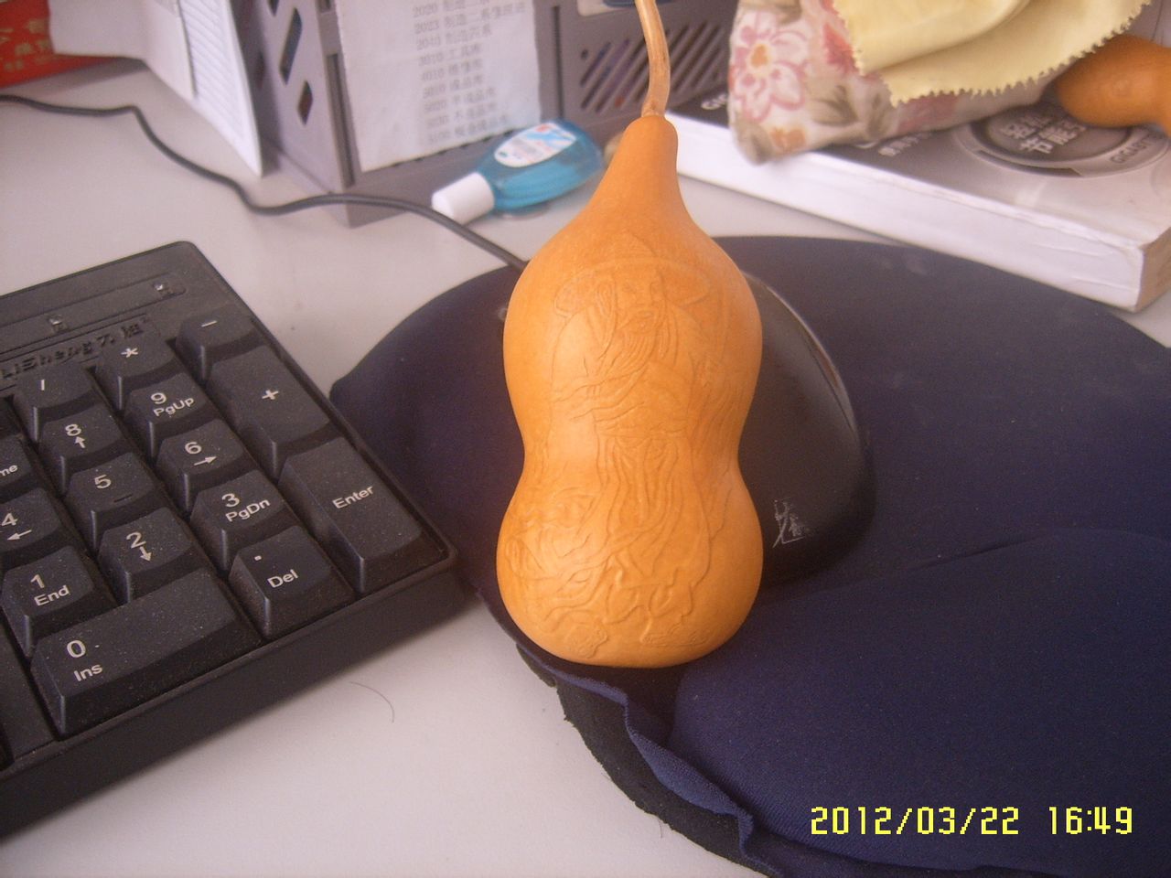 关于砑深浅问题,这个葫芦比较瘦,也就是皮薄筋多,实在压不下去了尤其是上部分,可以看到我是反复用刀了[呵呵],下面就肥一些,轻松一点!我现在练手,没刻意找适合砑花的葫芦,逮住一个就砑![呵呵]再次谢谢 山X妖 ,您多指点!