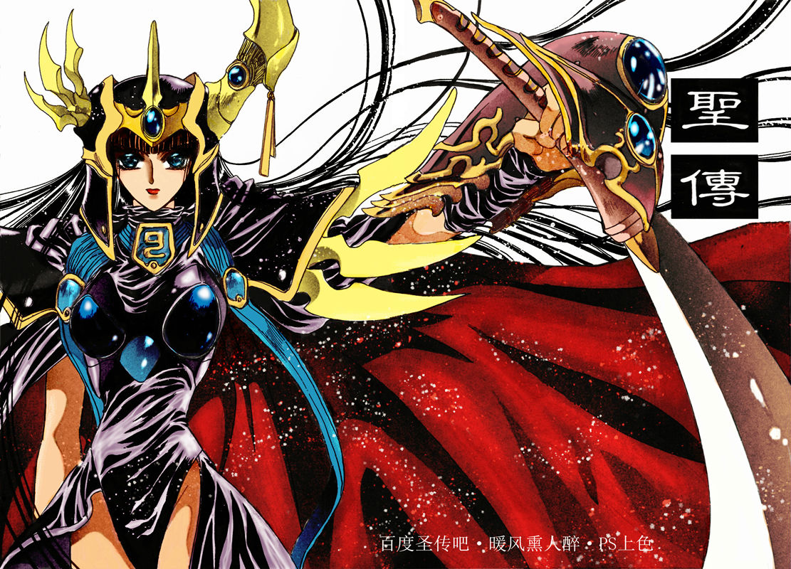 白色的部分,自己涂背景的时候,经常压到发丝、头盔、武器等等,需要用橡皮擦抹去,这个我能理解。这次的图,发丝是黑色的,不会染上色,没有问题。可是,如果是其它颜色的零乱发丝(比如迦楼罗王的银发),那么应该如何涂背景?