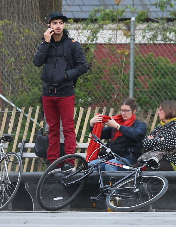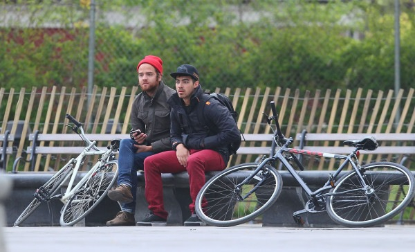 While out for a bike ride with a friend April 11 in NYC, Joe Jonas came upon the Trayvon Martin protest, and even though they didn’t ride along, Joe and his buddy stopped to lend their support for the injustice against Trayvon.
