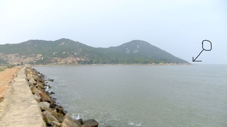 还有两三公里就走完海堤。箭头指的地方就是我要去的。