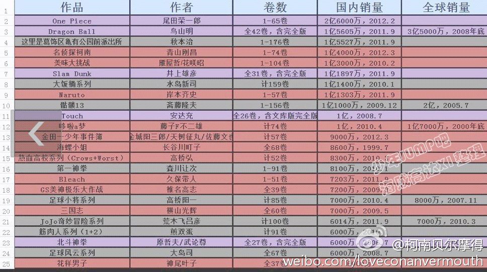日本漫画销量最新排行榜!op马上破三亿了 全部漫画哦历史上的
