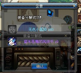 没用的,先卡出蓝冰的壳然后背包不要放有色小晶体(卡之前就要放仓库去)然后分解蓝装就会出现这个,分紫装就要把下级放仓库,选择角色就没了只是骗人用的,小子你新来的吧!