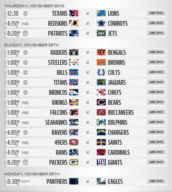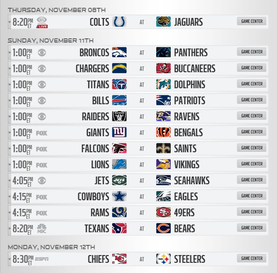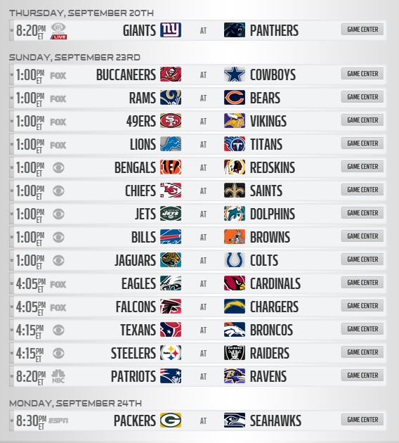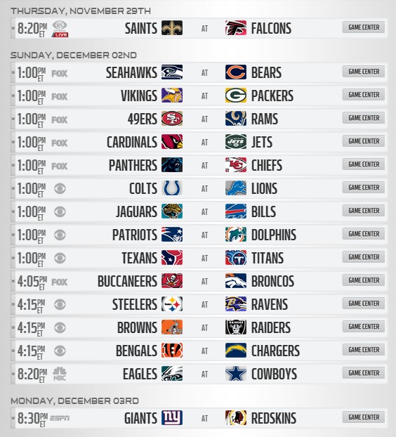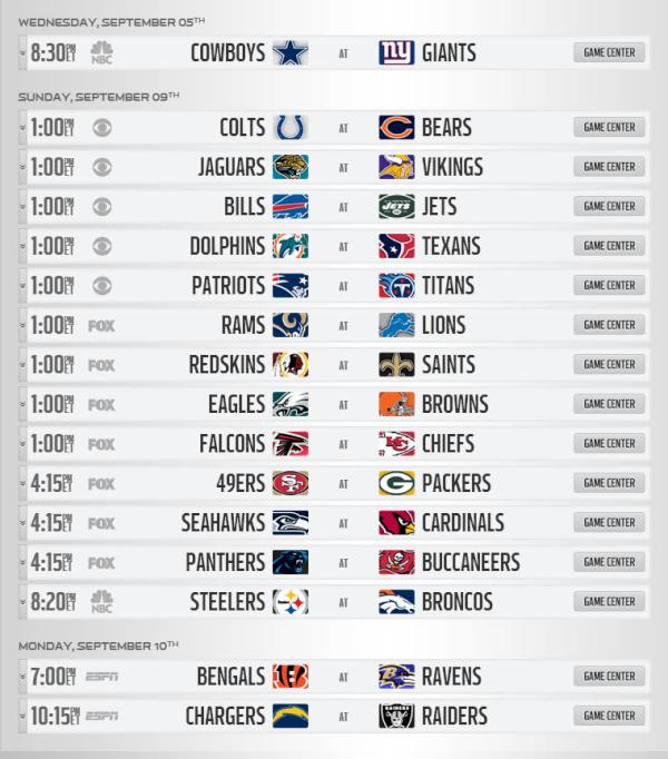2012赛季NFL完整赛程