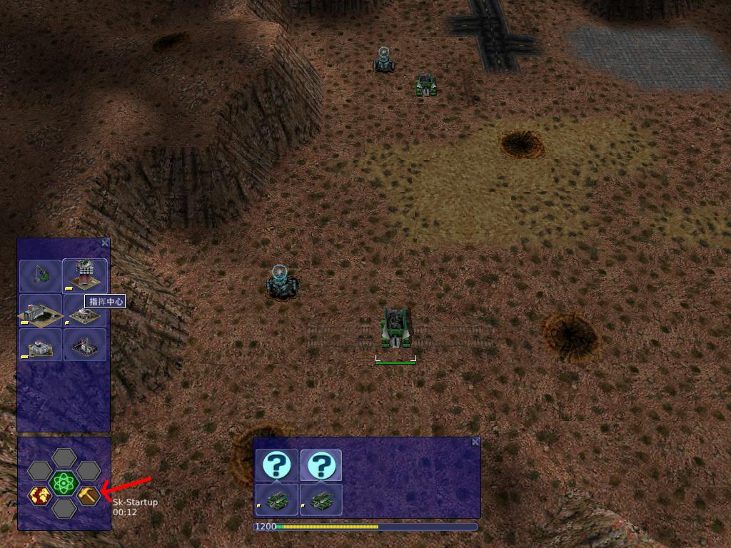点红箭头所指的地方弹出建造菜单,首先要造一个指挥中心。