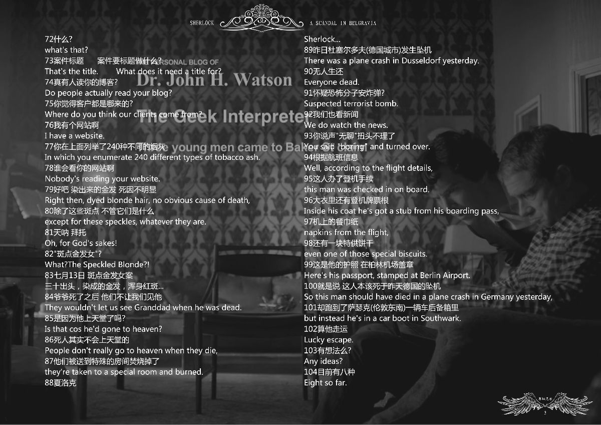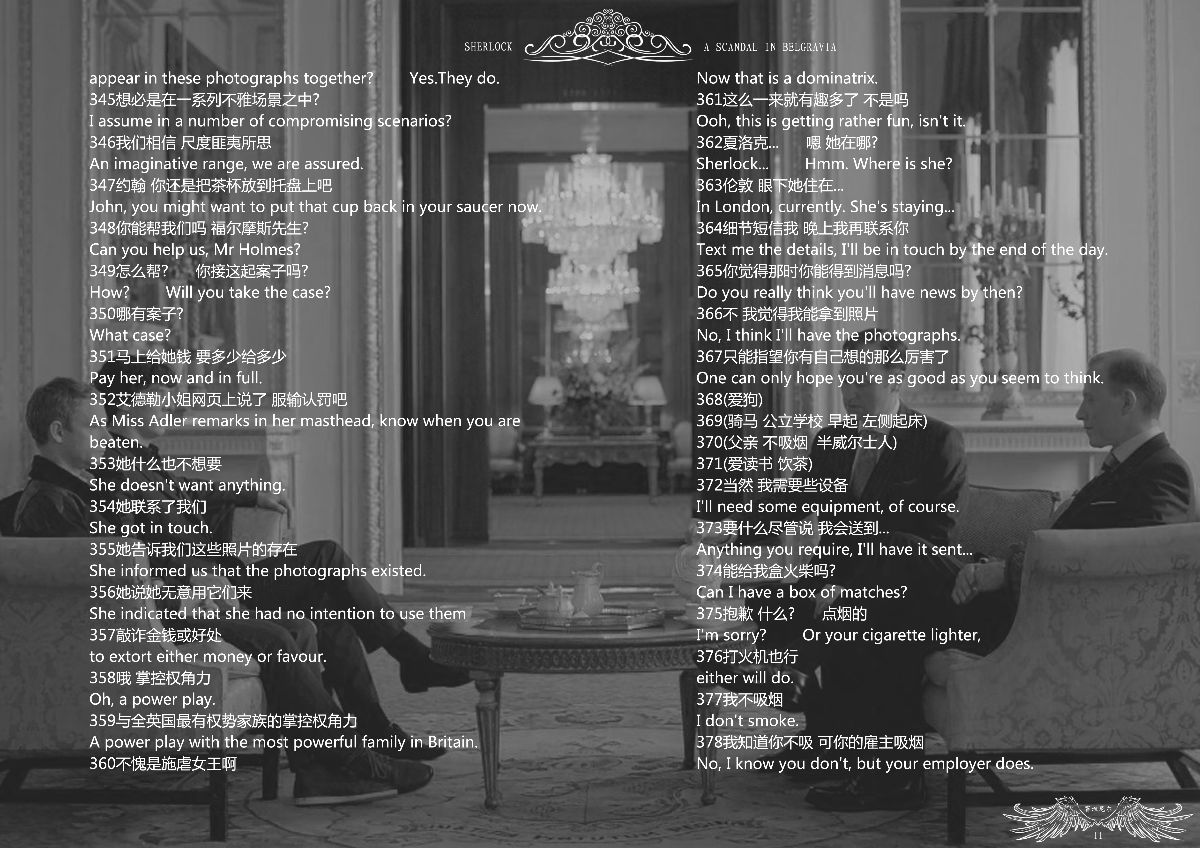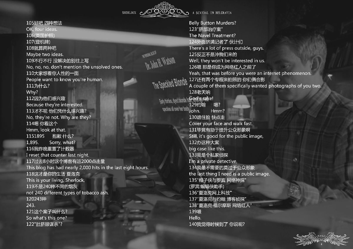 这个剧本已经是第三版了,前两版由于选了不适合的软件,做得很失败,这次用的PS,直接把***成图层放在截图上,还加做了页眉和页码,效果好很多,是最终版。