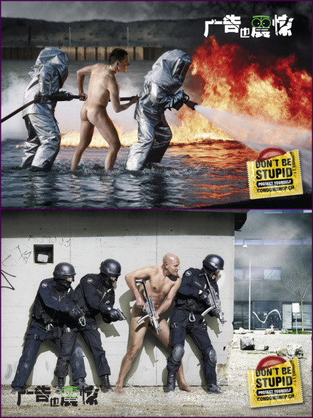 安全套广告——如果你不戴套套 就如无衣遮体般危险。.
