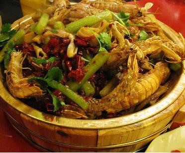 香辣爬爬虾 调料:葱、姜、蒜、食用油、郫县豆瓣、香辣酱、醪糟汁、食盐、干海椒、花椒粒、鸡精、味精、料酒编辑本段做法 1.切配:将葱切段、大蒜拍破、姜切片、洋葱、青、红椒 切条、芹菜切节、干辣椒切节。 2. 煮虾:先用沸水将皮皮虾煮开约1到2分钟,煮皮皮虾时,水中放些姜、料酒以去腥味。 3.炒料:锅中加入食用油烧热将干海椒节、花椒粒、郫县豆瓣、香辣酱、葱、姜、蒜、依次倒入中,小火不停翻炒直至炒香出味。 4.炒虾:将皮皮虾倒入炒香的料中后,开旺火快炒5到6分钟即可,炒的过程中,放入鸡精、味精、料酒、加入芹菜、洋葱、青、红椒倒入锅中翻炒成熟,便可以起锅装盘。