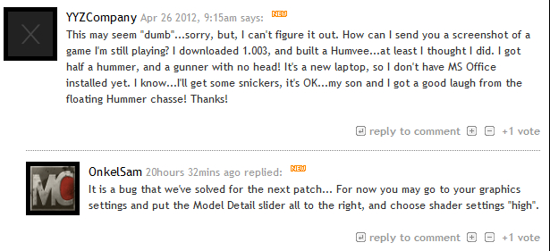 然后去Mod DB和MC官网论坛看了下,同样问题的老外也还不少,分析下来,确实是1.003 Humvee的皮肤BUG。